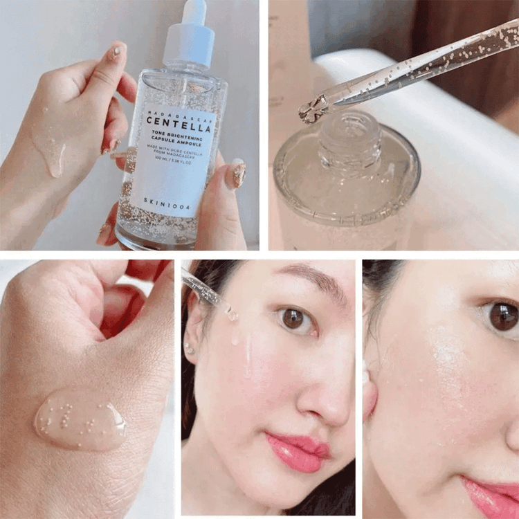 سرم روشن کننده قوی سنتلا اسکین 1004 حجم 100 میل حاوی سه ماده روشن کننده ویتامین C، ترانکسامیک اسید و نیاسینامید است. این محصول پوست را تسکین می دهد و به بازسازی آن کمک کرده تا پوستی یکدست و روشن تر داشته باشیم.سرم (آمپول) روشنکننده Centella Tone Brightening Capsule Ampoule یک محصول موثر و کارآمد است که برای بهبود رنگ و روشنایی پوست طراحی شده است. این آمپول با ترکیبات منتخب و افزودن عصاره گیاه Centella Asiatica، که به عنوان یک ابرقدرتهای مرطوبکننده و آرامبخش معروف است، به پوست نرمی و رطوبت میبخشد.